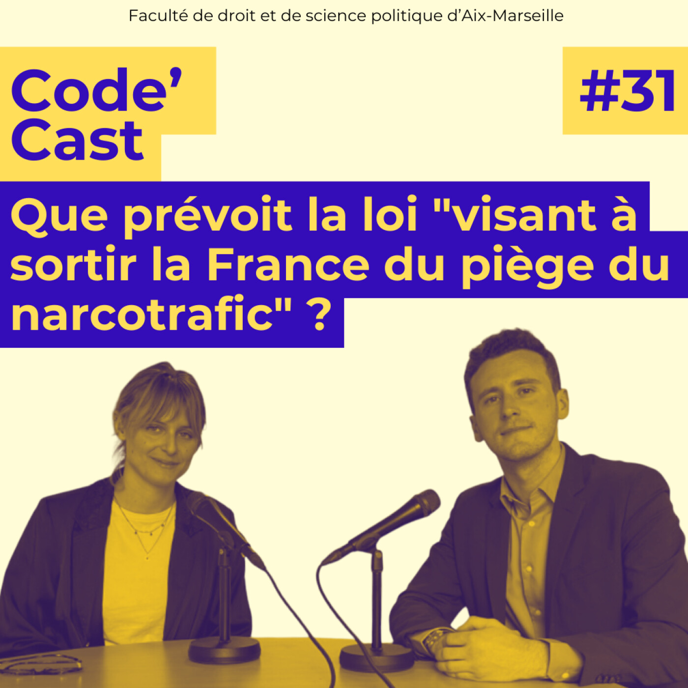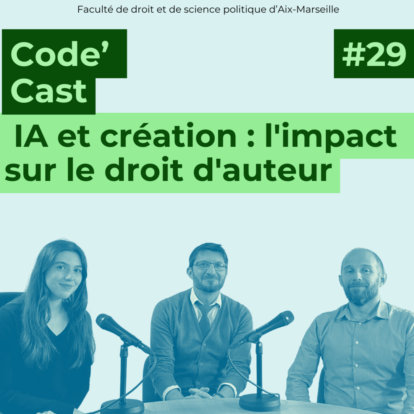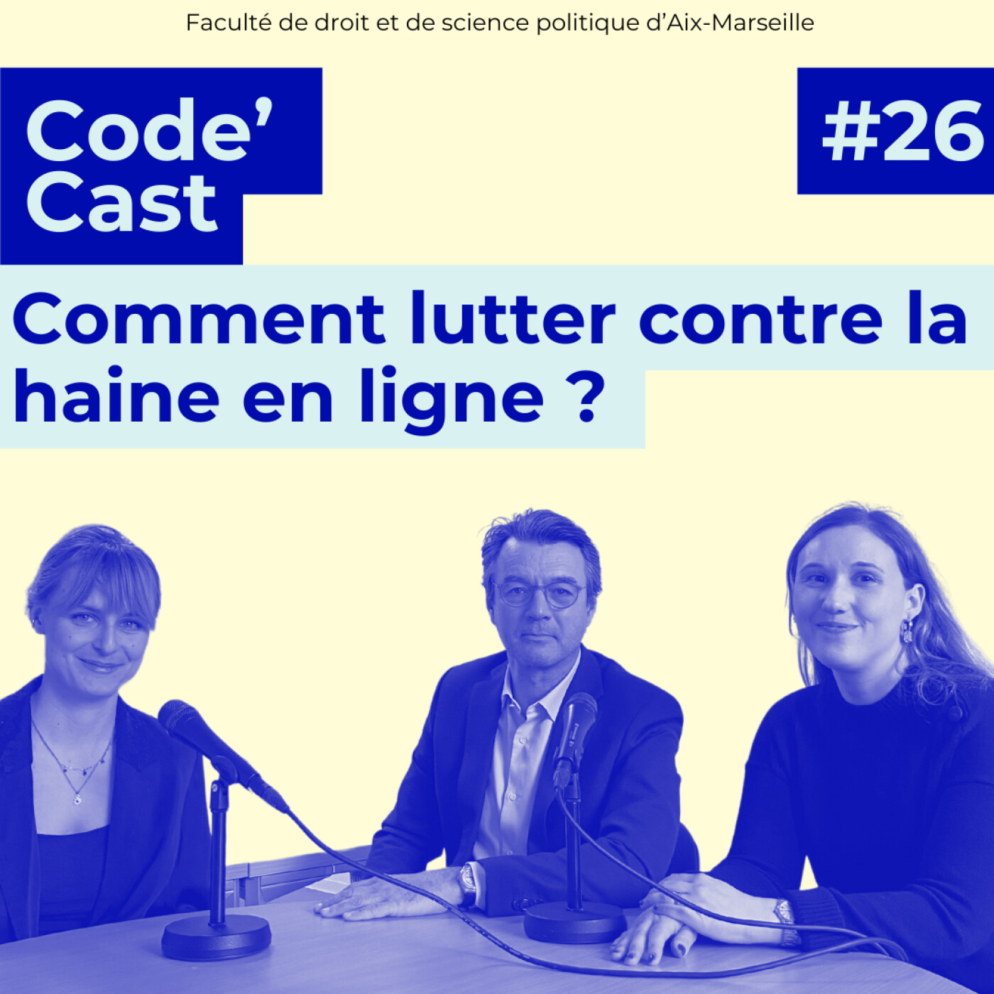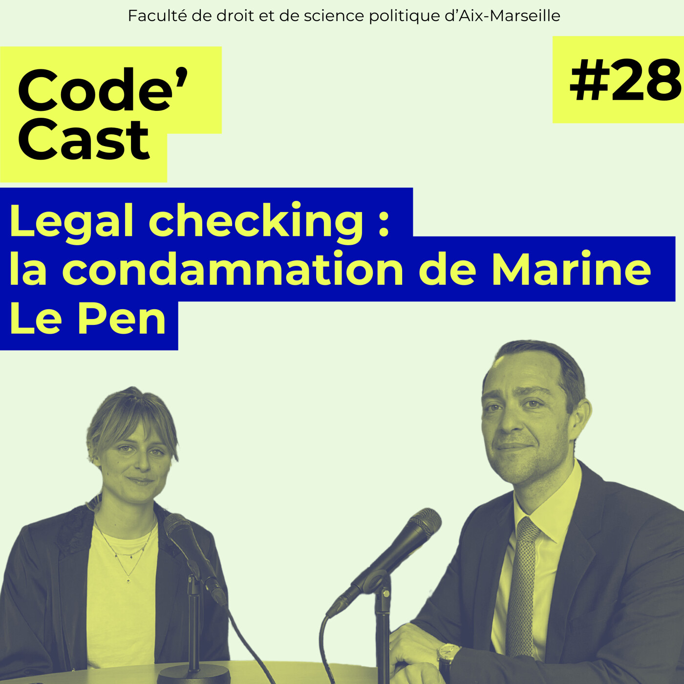 Vous êtes plutôt Code civil ? Code pénal ? ou Code général des impôts ? Quelle que soit la réponse, Code’Cast s’adresse à tous les juristes ! Que vous soyez juriste en herbe ou juriste accompli, la nouvelle chaîne podcast vous permet de suivre l’actualité de la Faculté de droit et de science politique d’Aix-Marseille. Au programme : témoignages d’étudiants et d’enseignants, annonces des évènements qui rythment la vie des campus d’Aix-en-Provence, d’Arles et de Marseille, discussions et débats sur les formations et les concours, et Legal Checking sur des questions d’actualité.