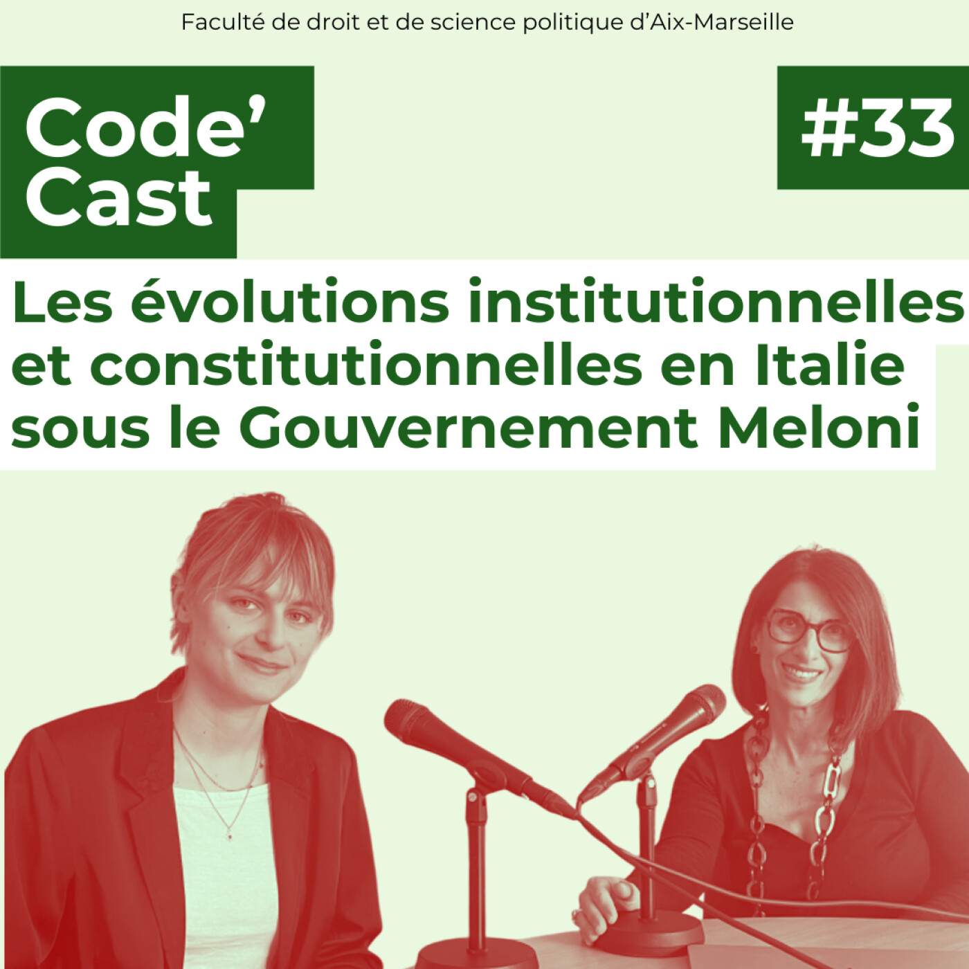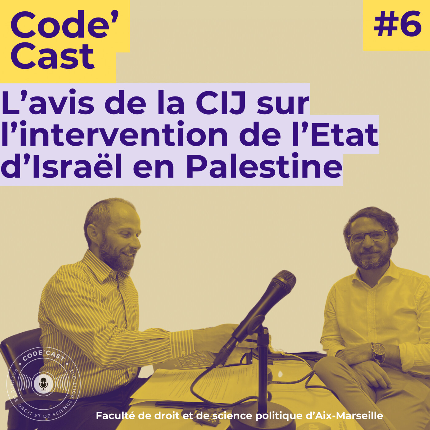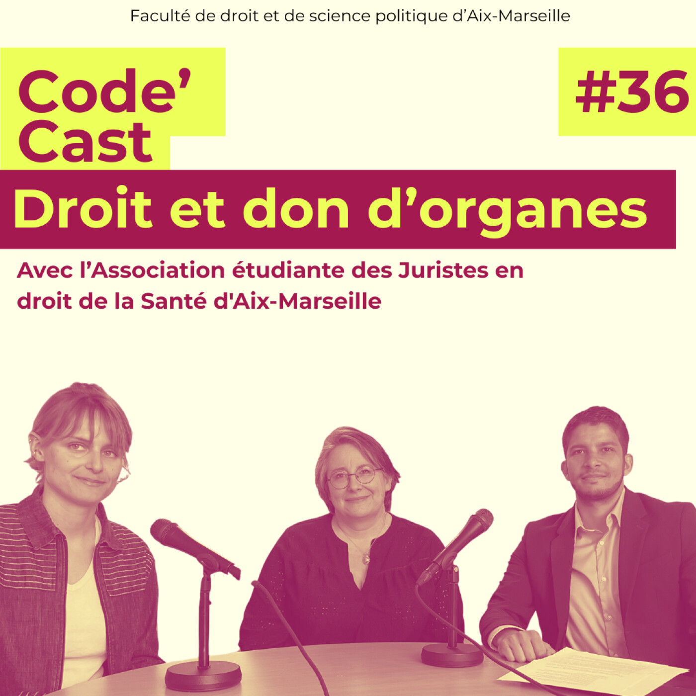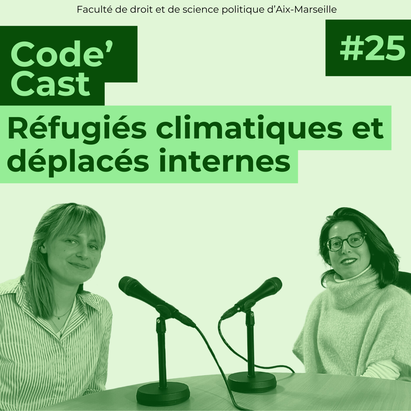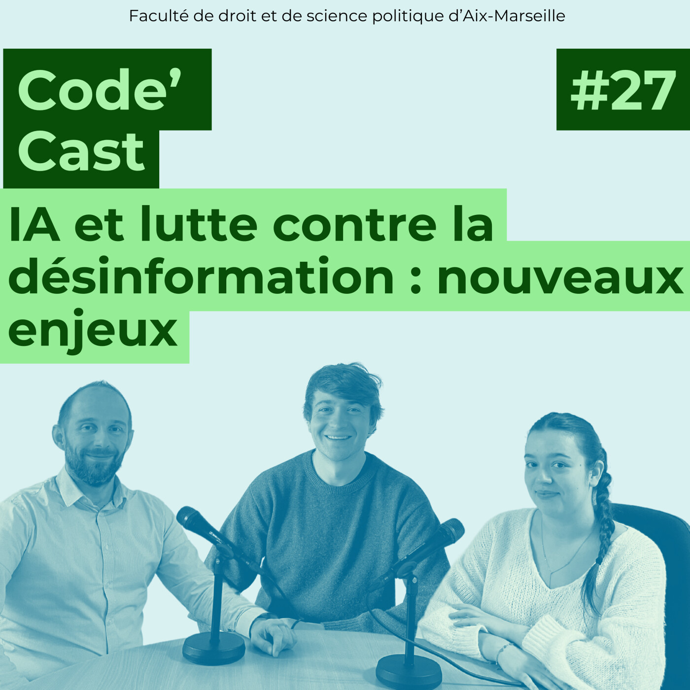 Vous êtes plutôt Code civil ? Code pénal ? ou Code général des impôts ? Quelle que soit la réponse, Code’Cast s’adresse à tous les juristes ! Que vous soyez juriste en herbe ou juriste accompli, la nouvelle chaîne podcast vous permet de suivre l’actualité de la Faculté de droit et de science politique d’Aix-Marseille. Au programme : témoignages d’étudiants et d’enseignants, annonces des évènements qui rythment la vie des campus d’Aix-en-Provence, d’Arles et de Marseille, discussions et débats sur les formations et les concours, et Legal Checking sur des questions d’actualité.