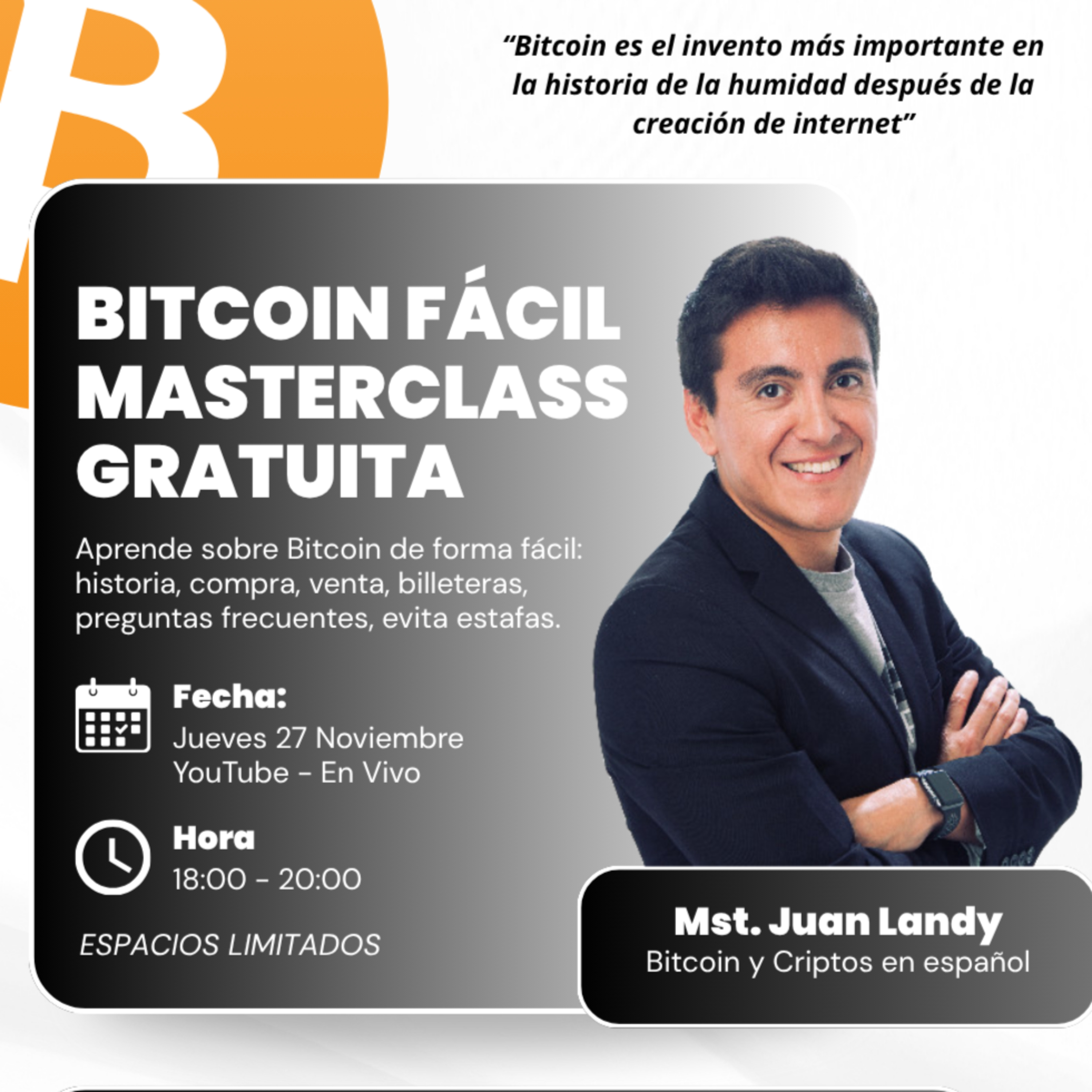 En 2017 descubrí ₿itcoin y desde entonces llevo estudiando el potencial de esta tecnología y la disrupción de las criptomonedas. Hola, soy Juan Sebastián Landy, desarrollador de software y un apasionado por ₿itcoin.