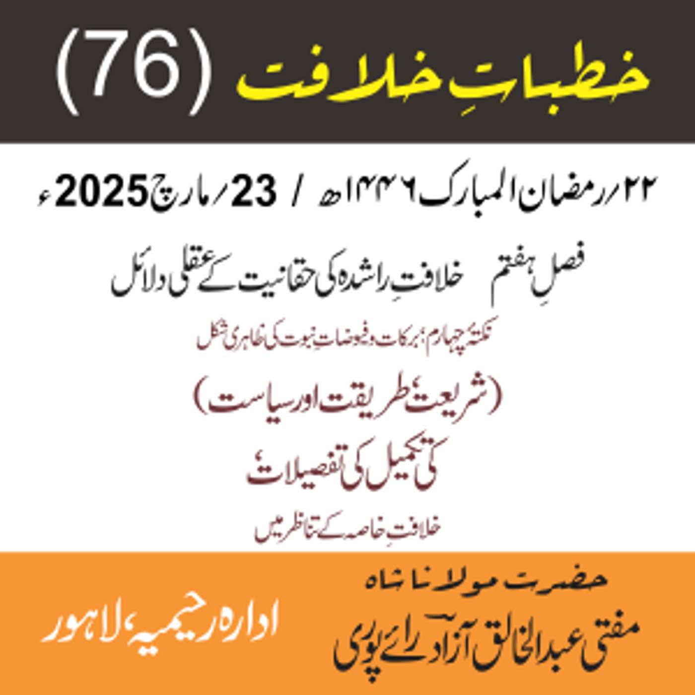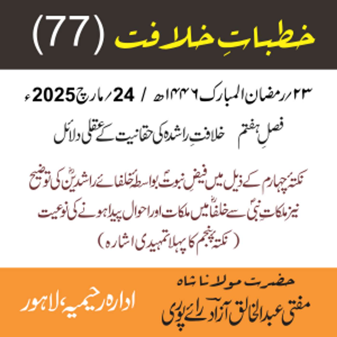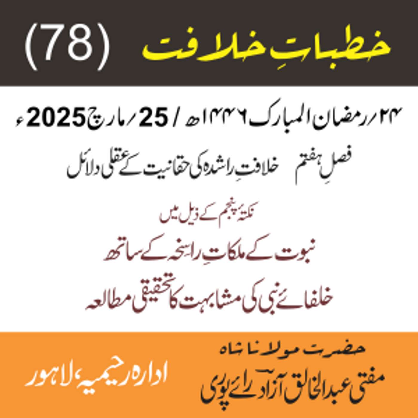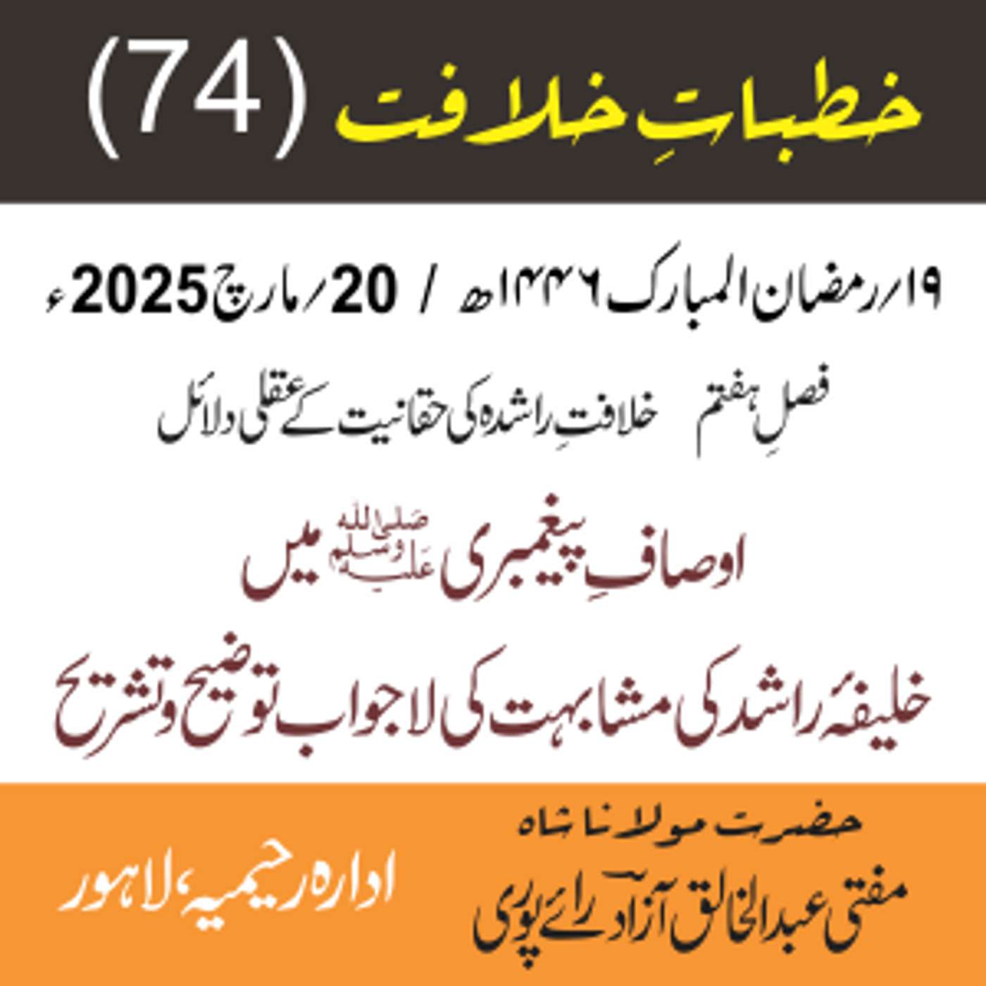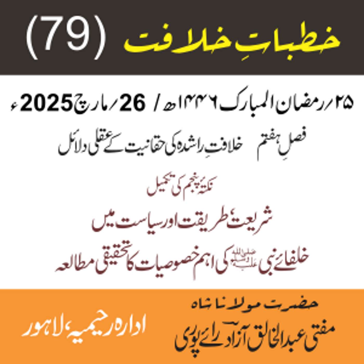 مقرر: مفتی عبد الخالق آزاد رایٗے پوری ، مسند نشین سلسلہٗ عالیہ رحیمیہ رایٗے پور۔