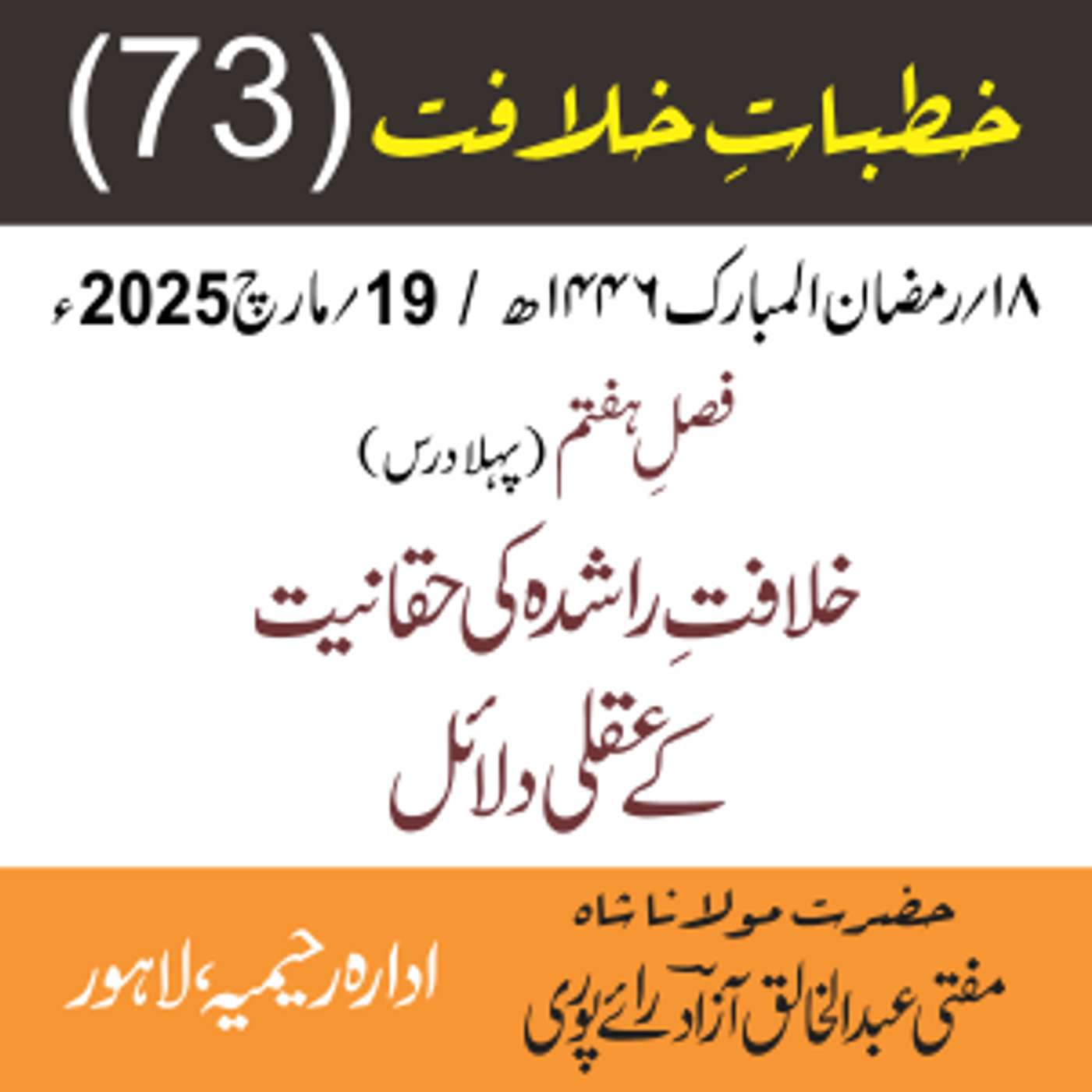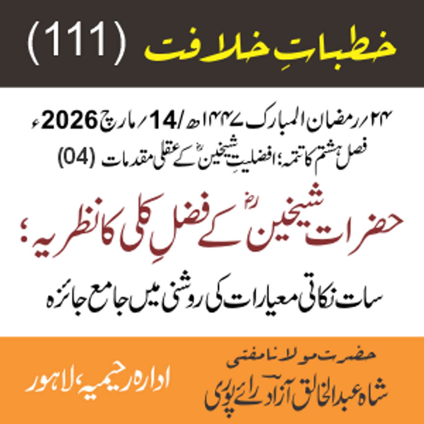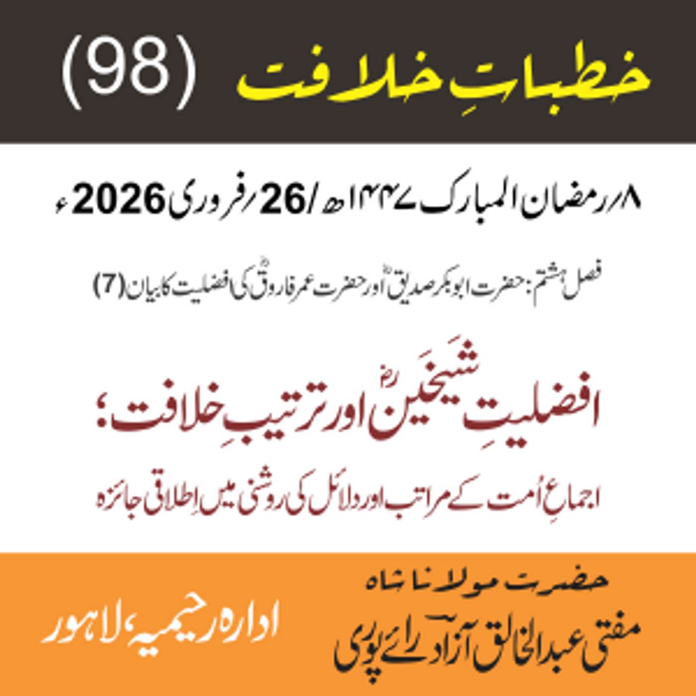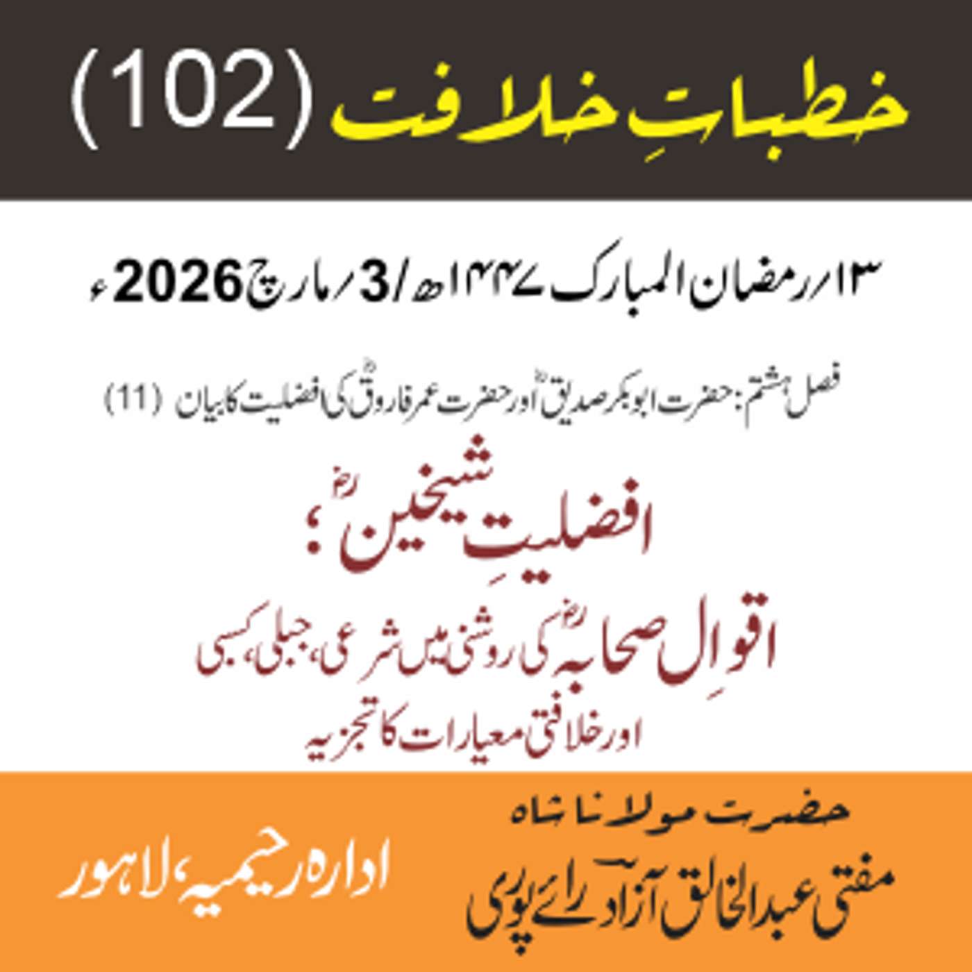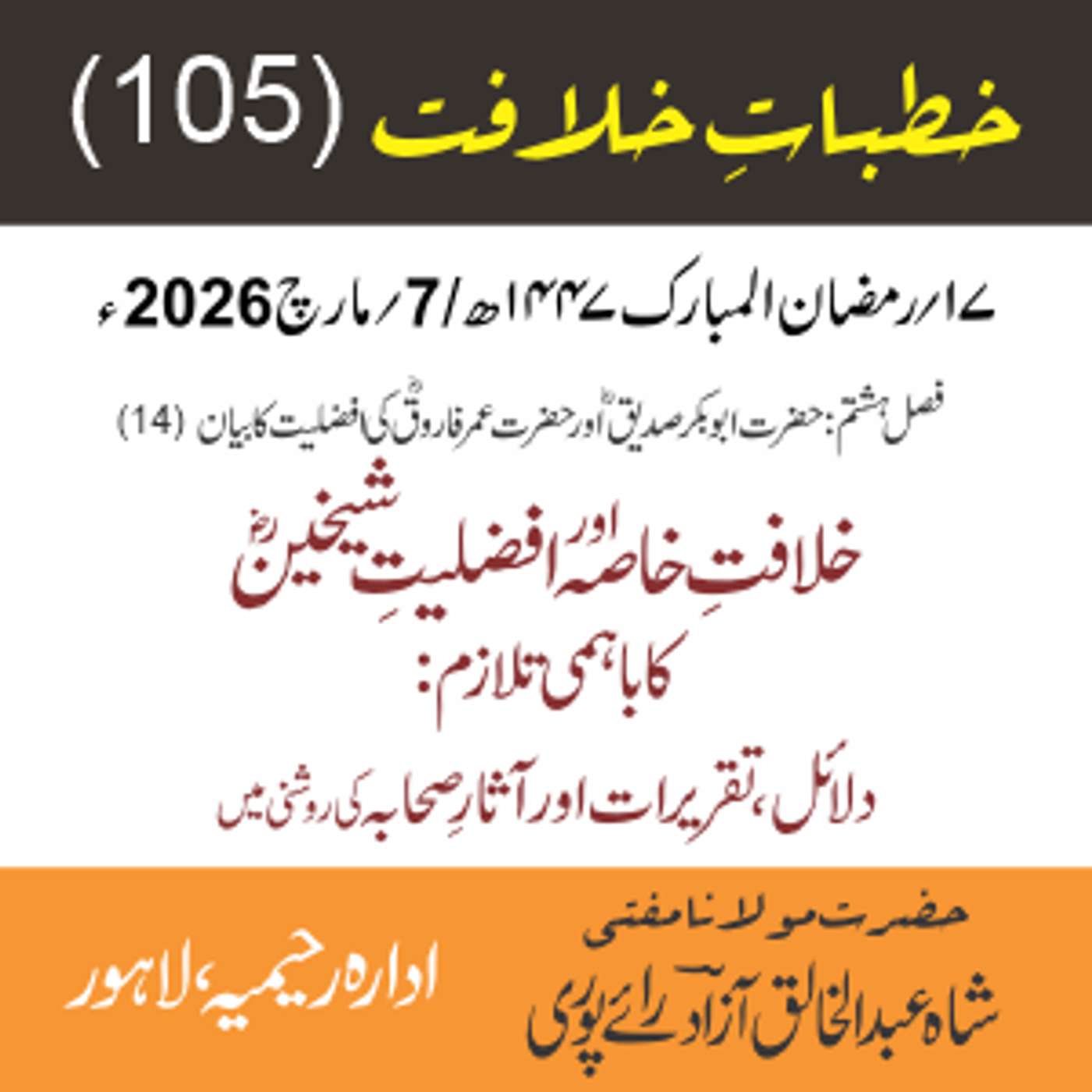 مقرر: مفتی عبد الخالق آزاد رایٗے پوری ، مسند نشین سلسلہٗ عالیہ رحیمیہ رایٗے پور۔