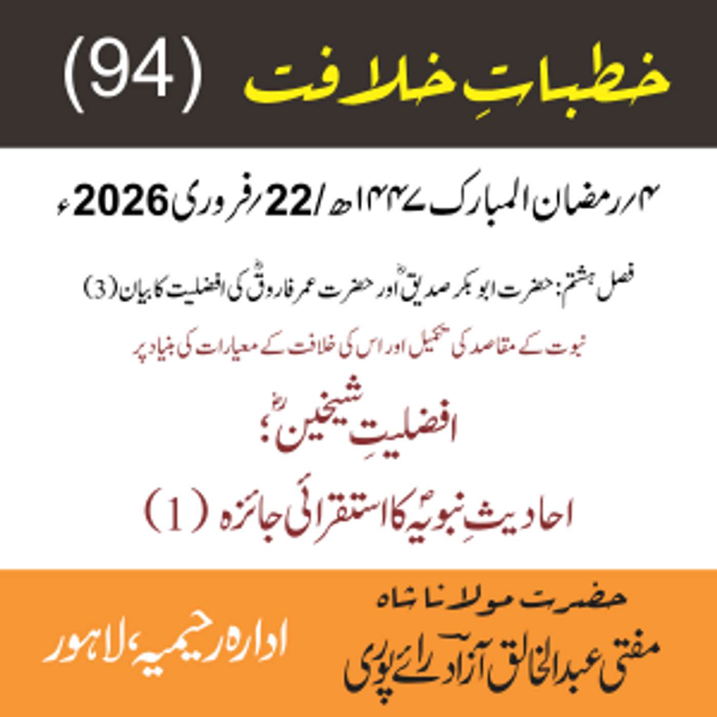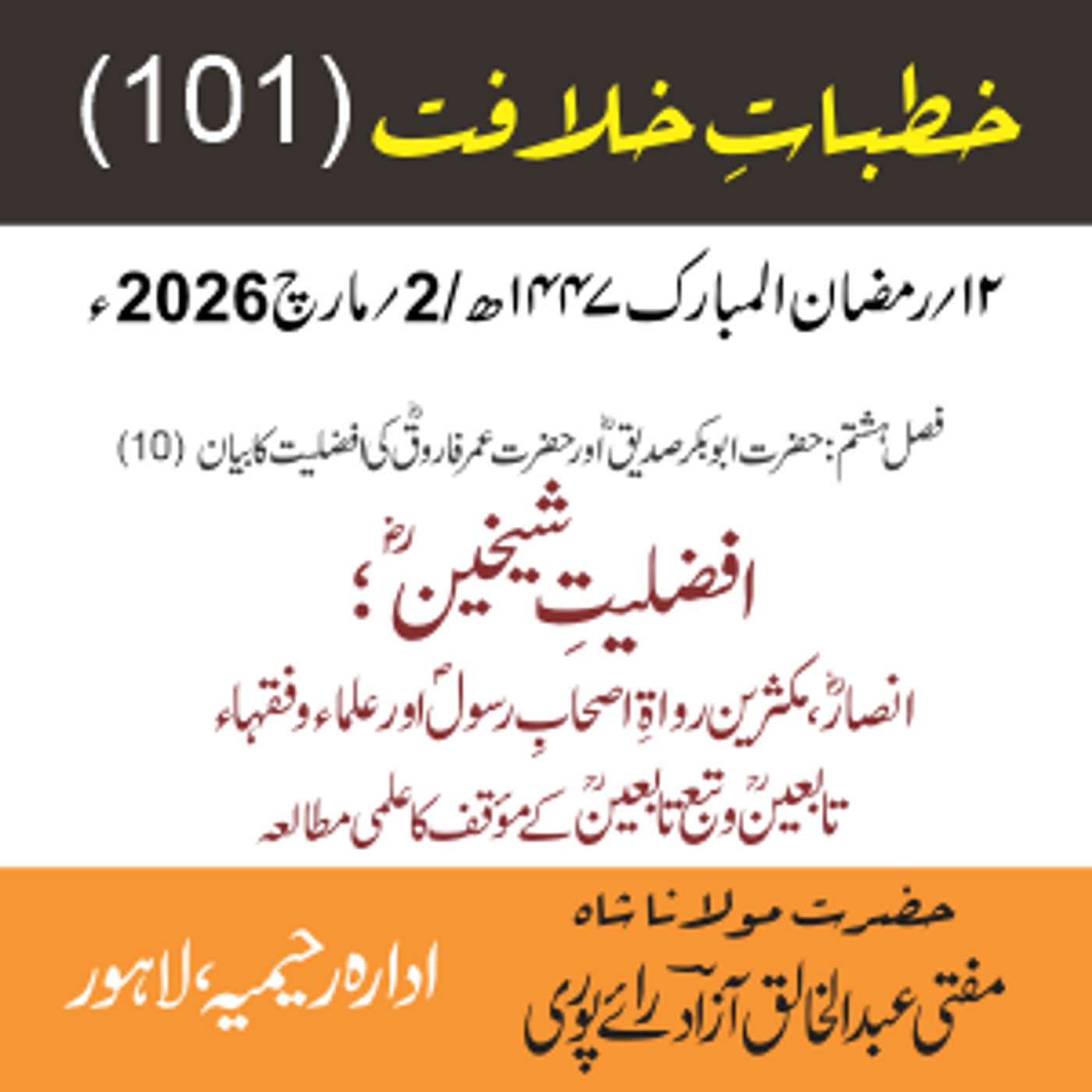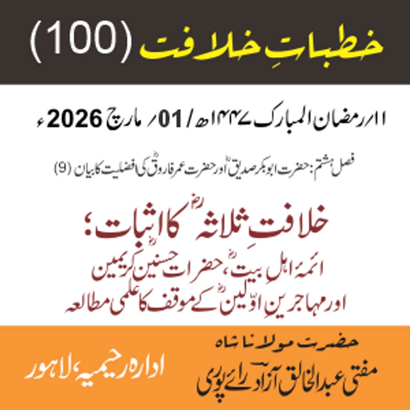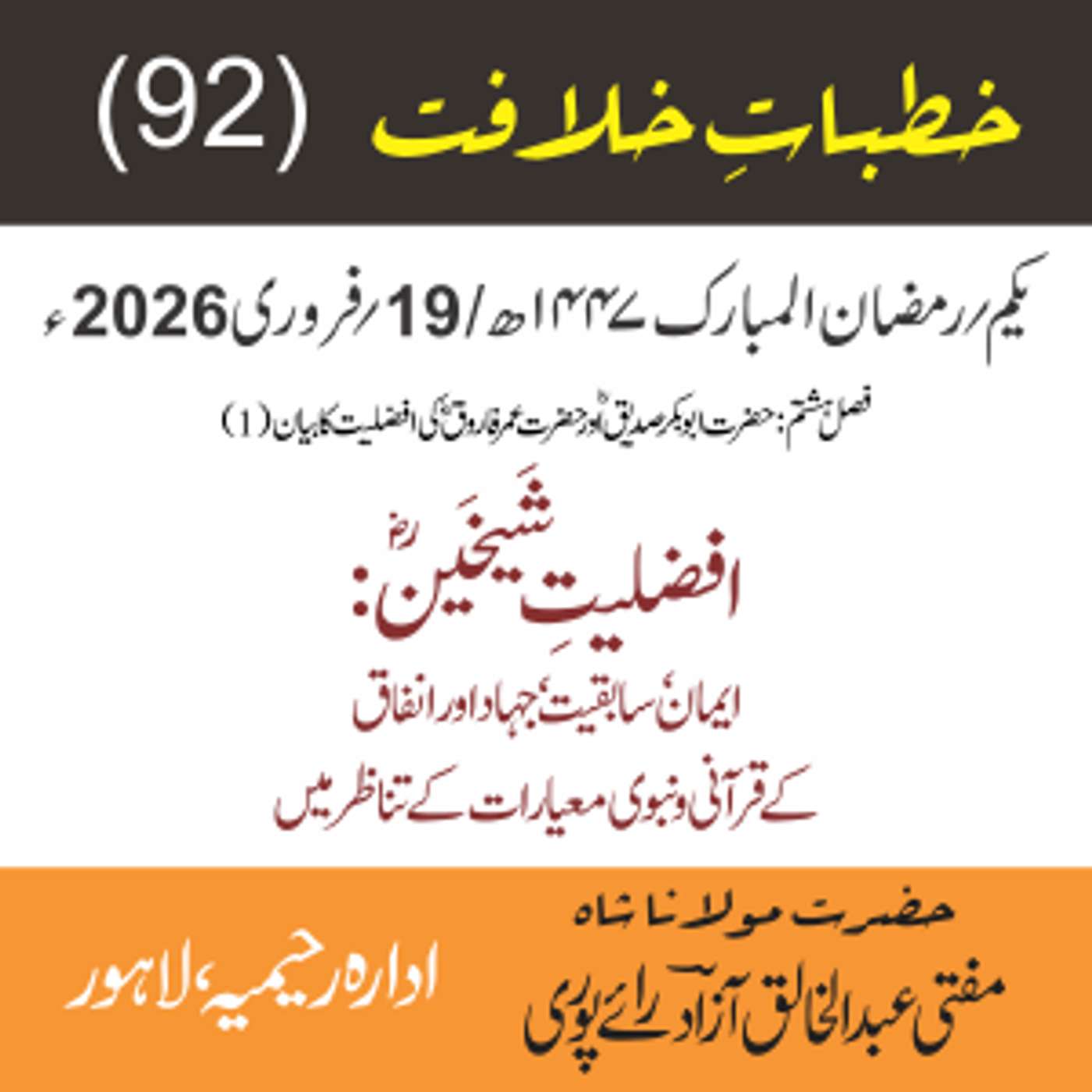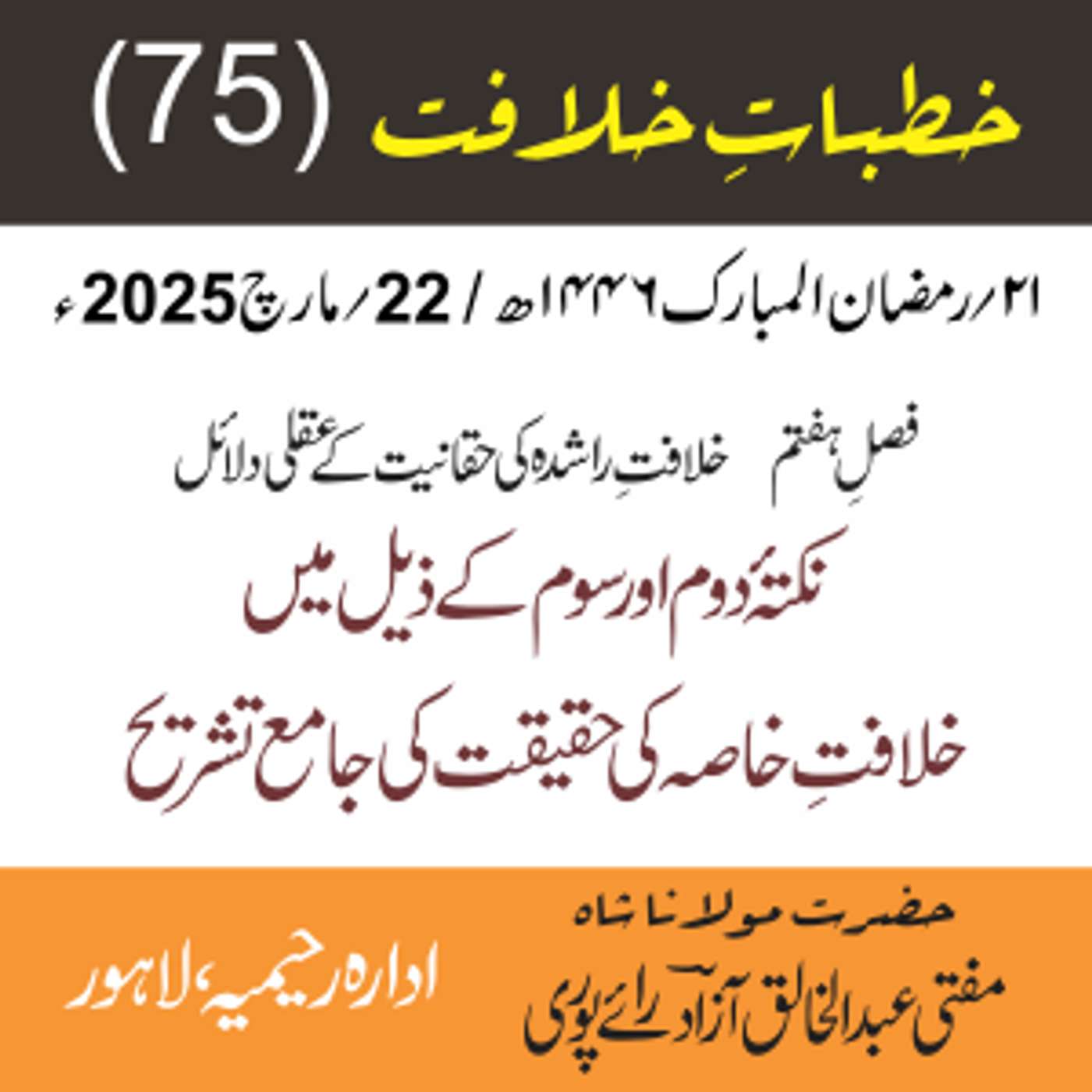 مقرر: مفتی عبد الخالق آزاد رایٗے پوری ، مسند نشین سلسلہٗ عالیہ رحیمیہ رایٗے پور۔