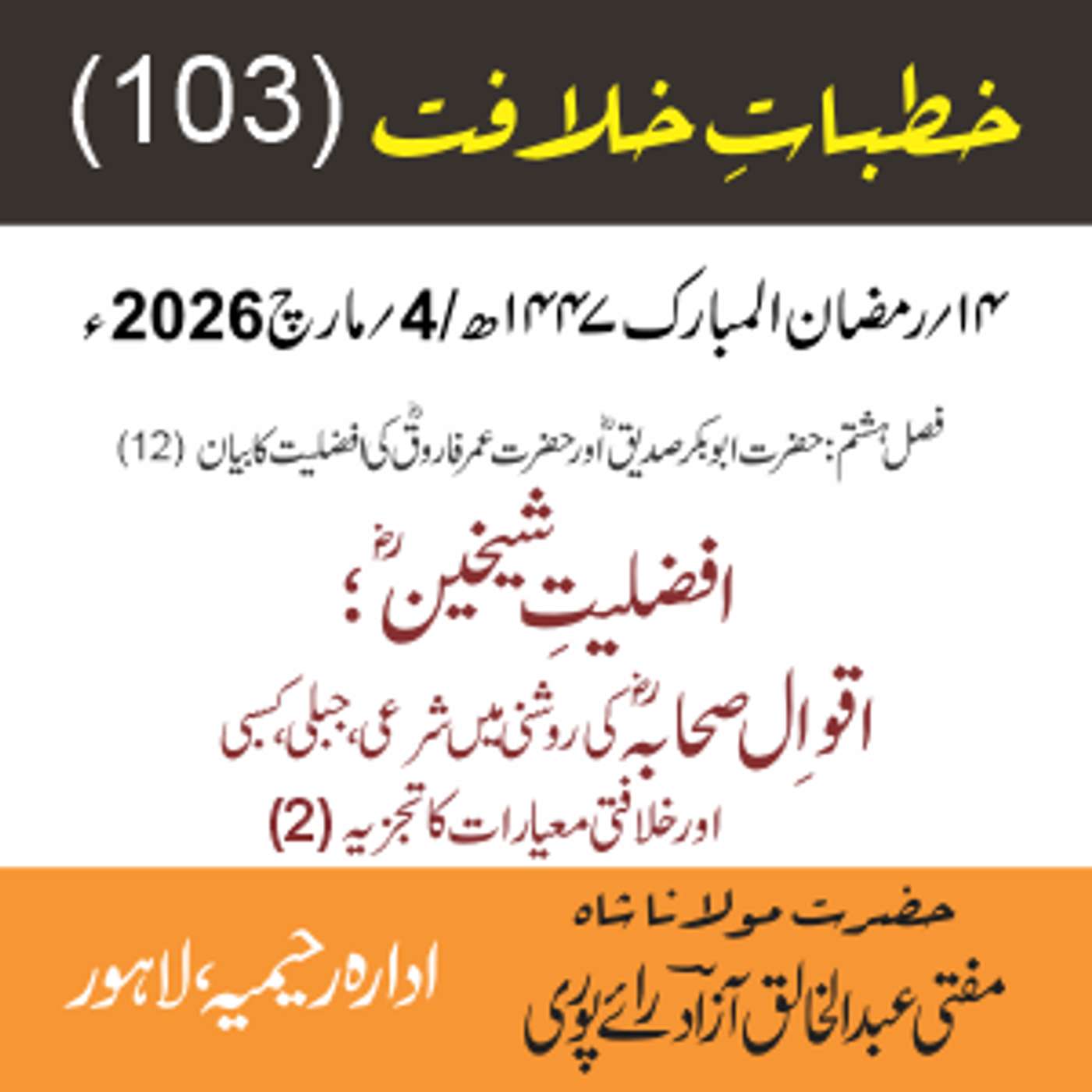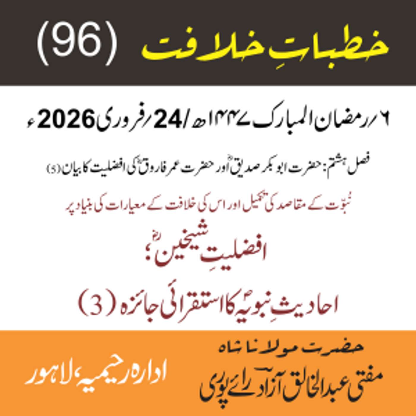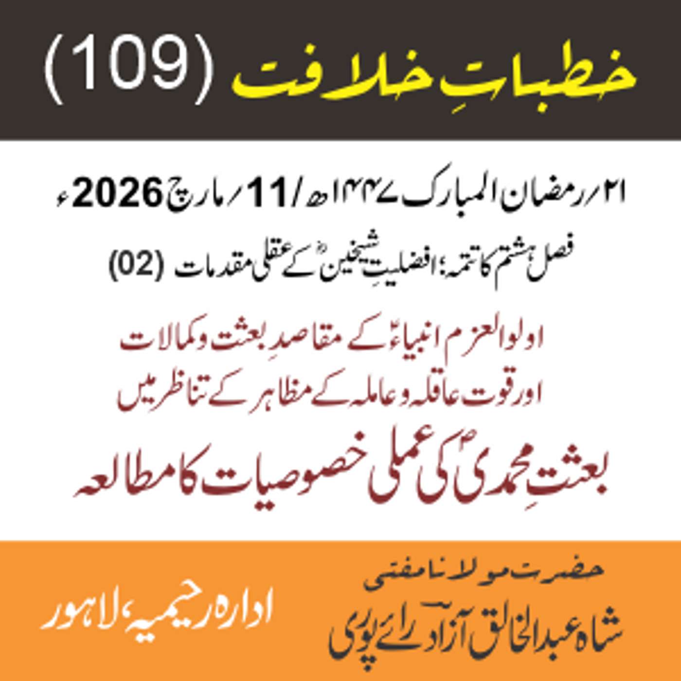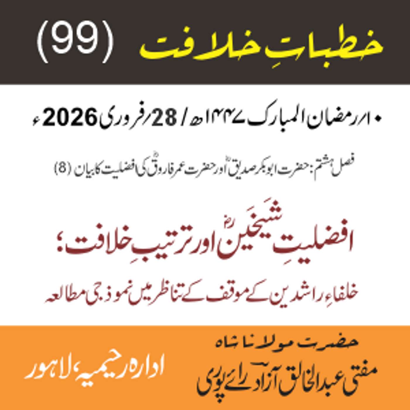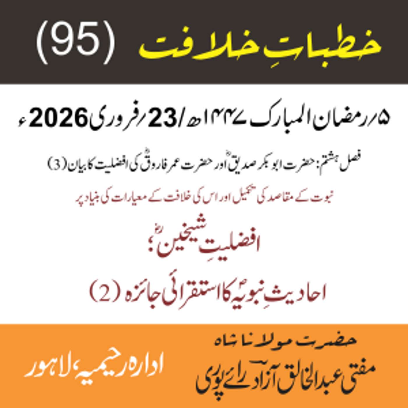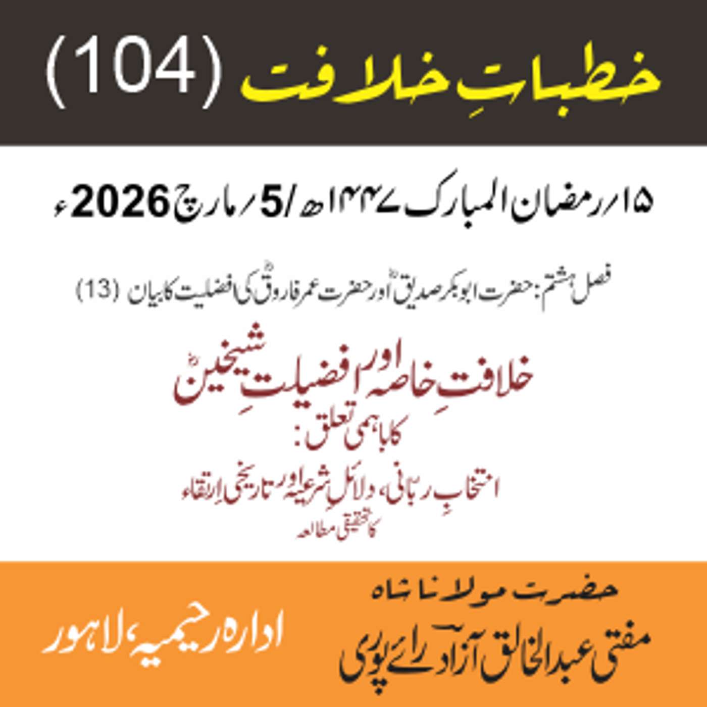 مقرر: مفتی عبد الخالق آزاد رایٗے پوری ، مسند نشین سلسلہٗ عالیہ رحیمیہ رایٗے پور۔