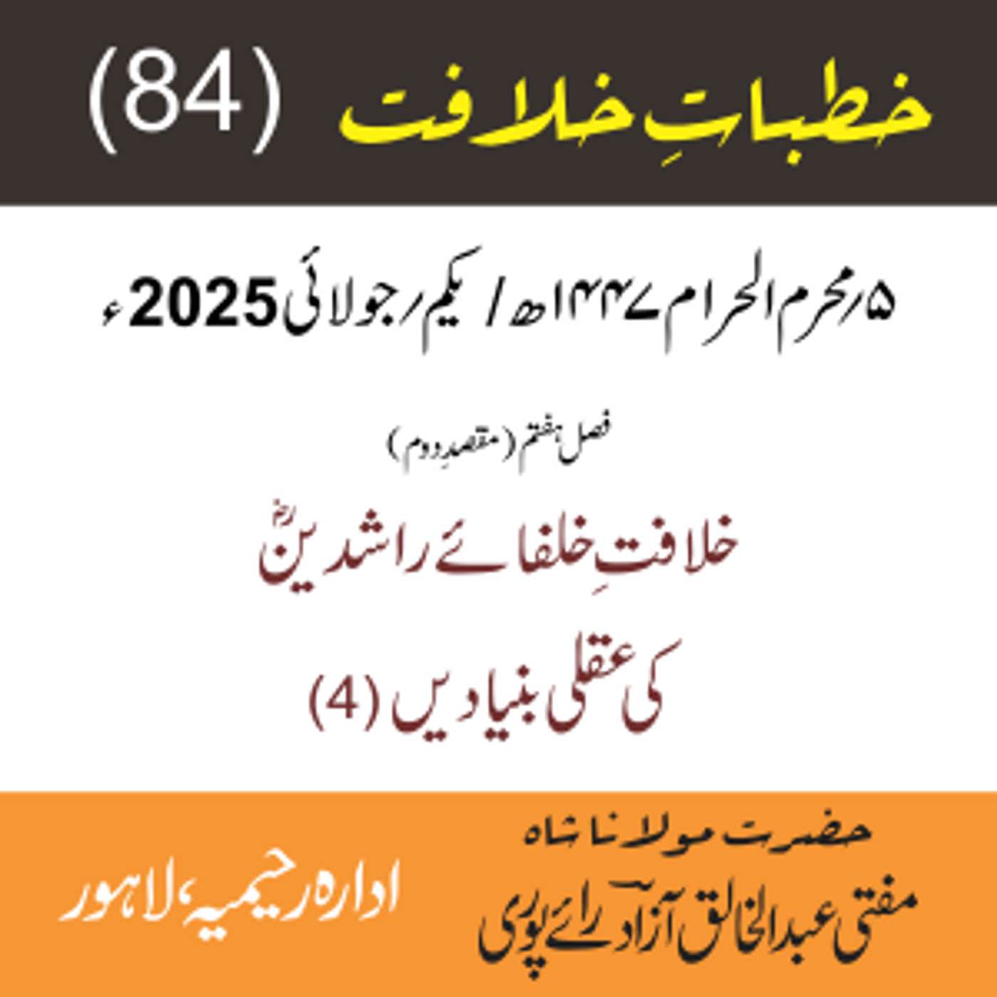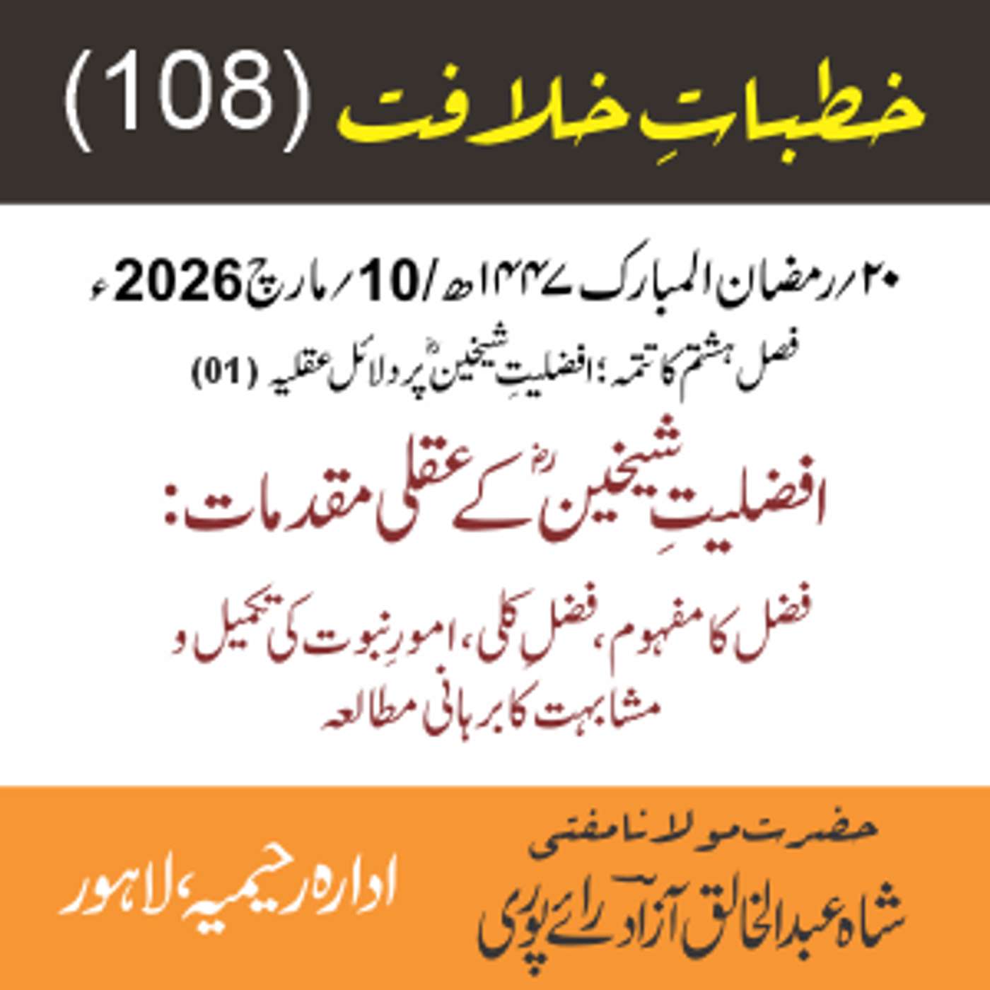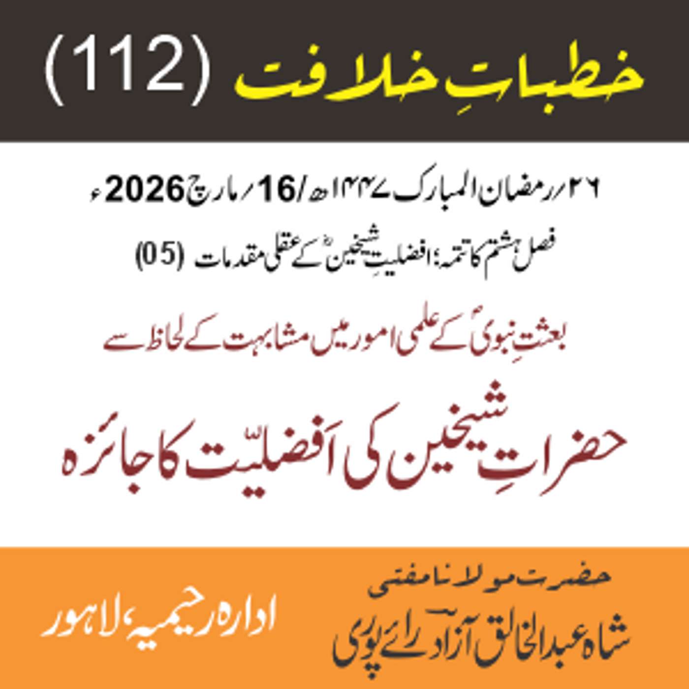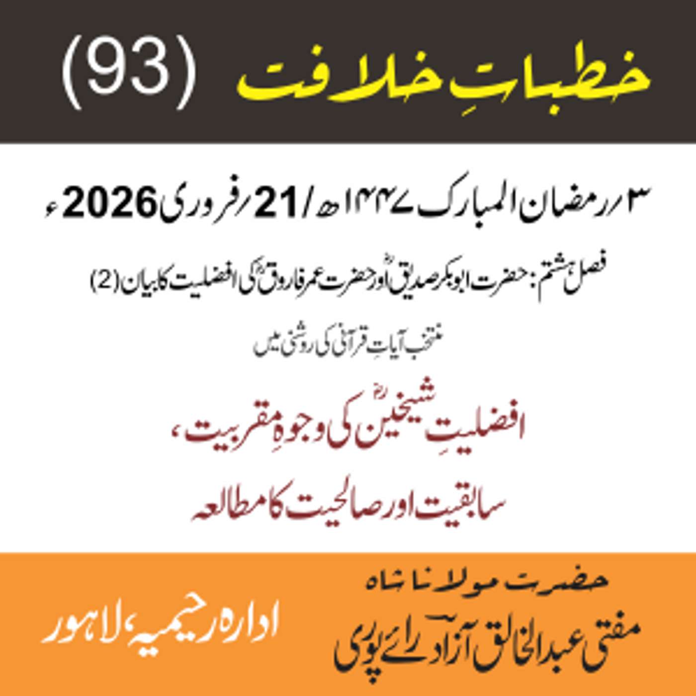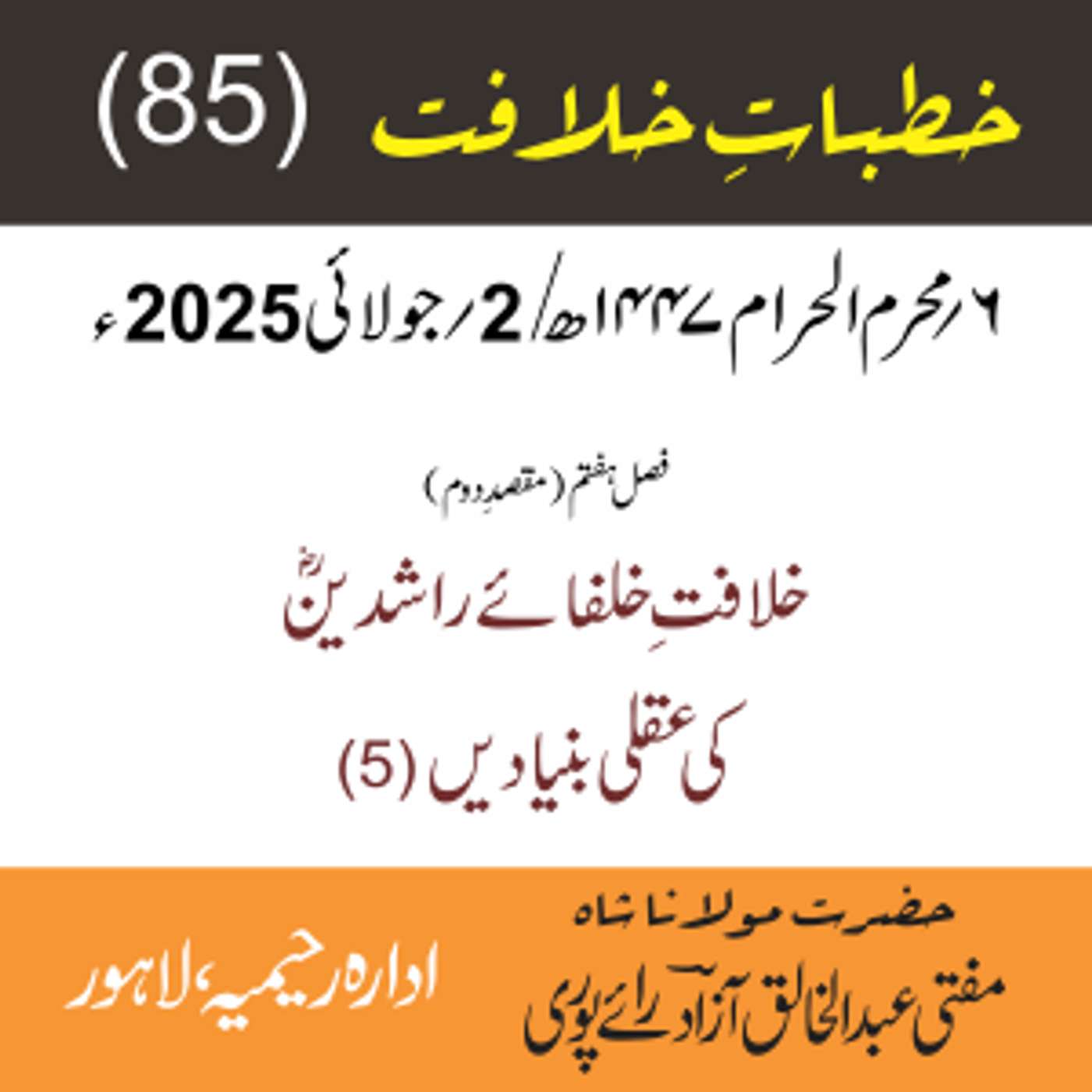 مقرر: مفتی عبد الخالق آزاد رایٗے پوری ، مسند نشین سلسلہٗ عالیہ رحیمیہ رایٗے پور۔