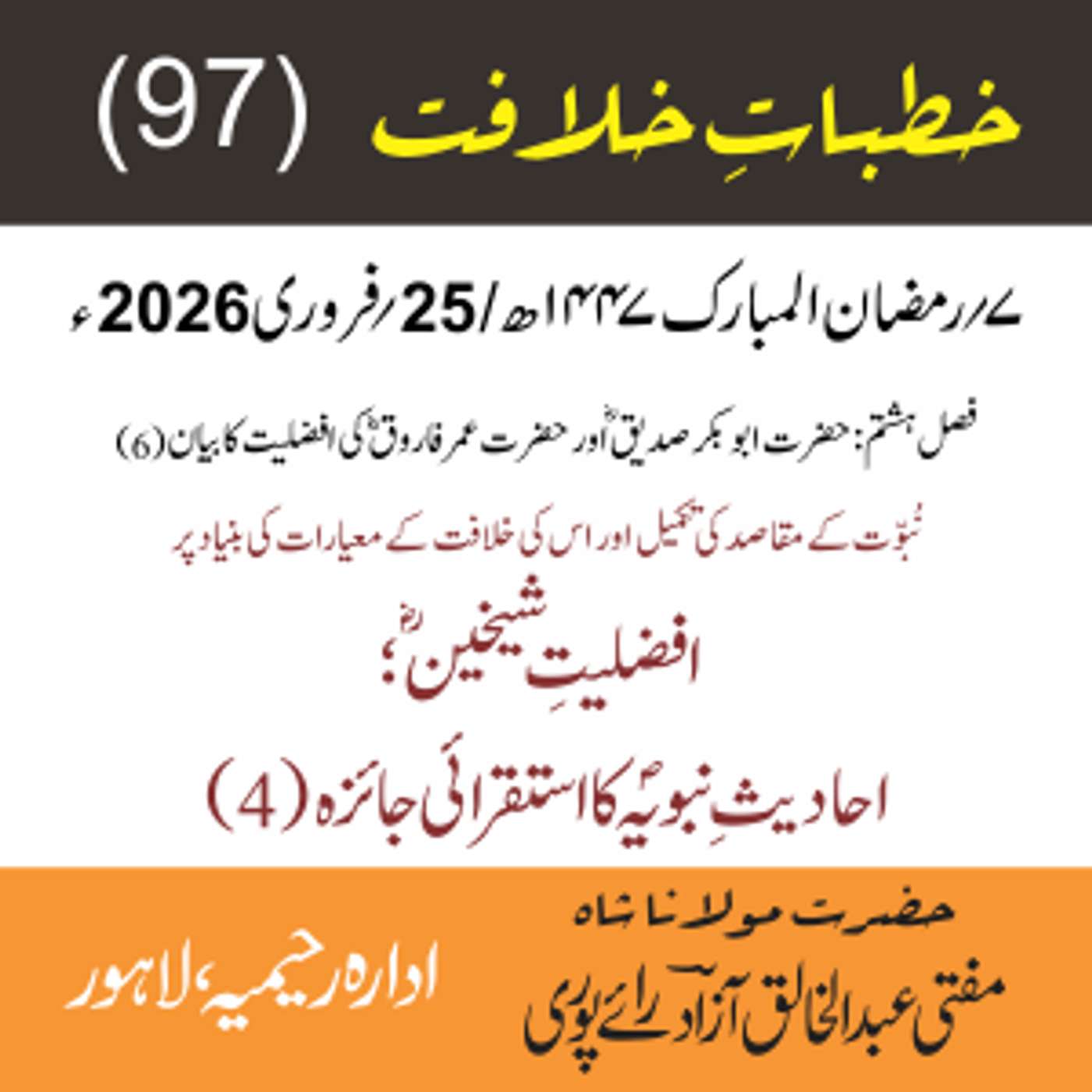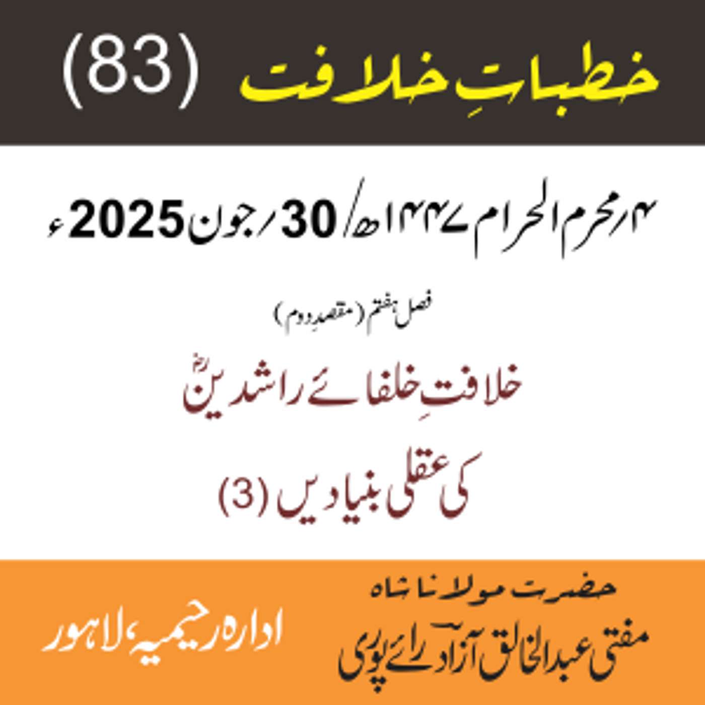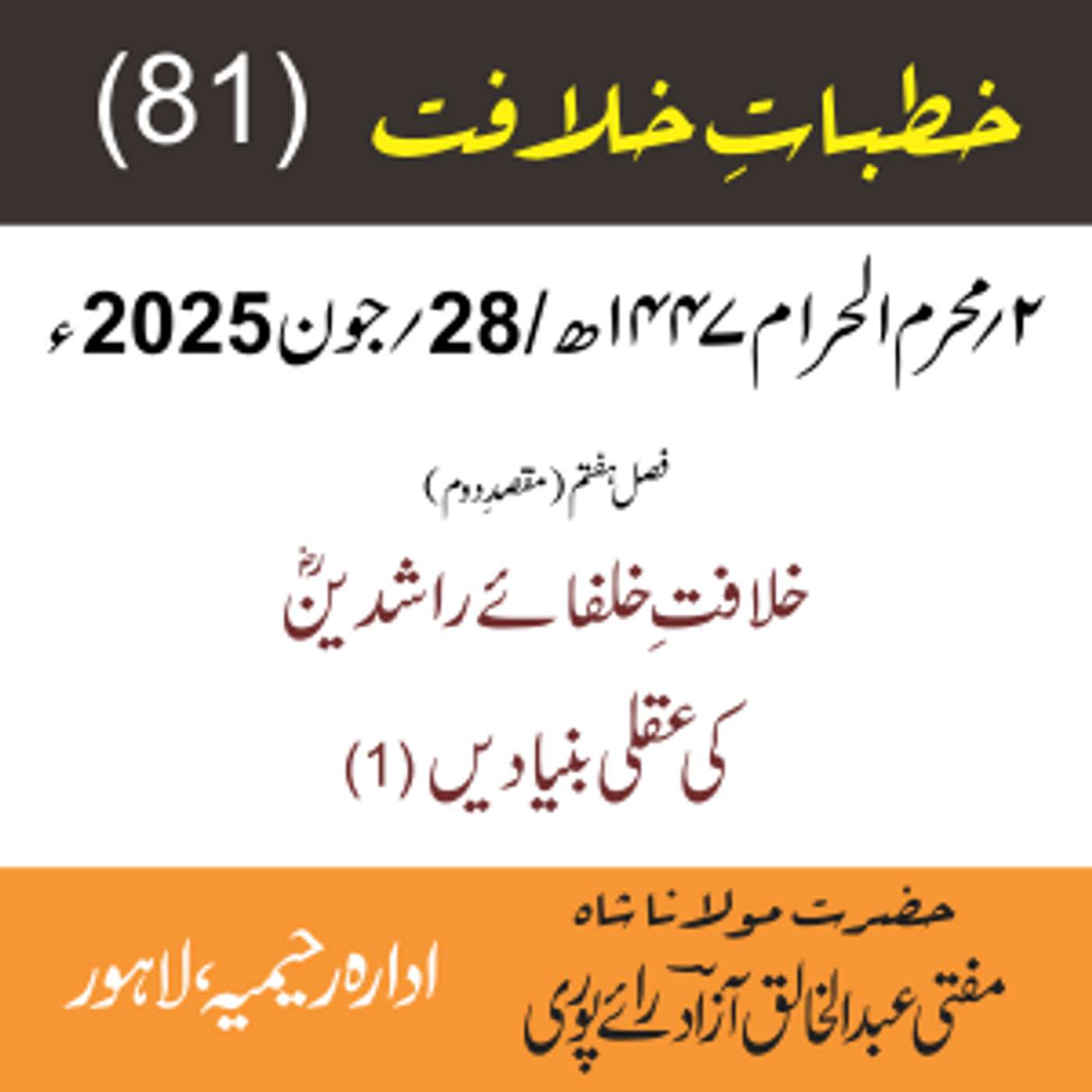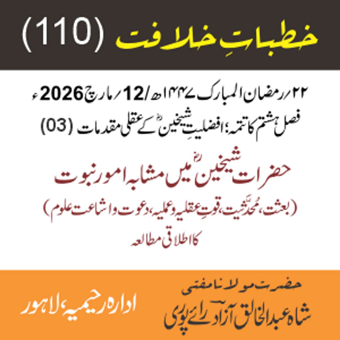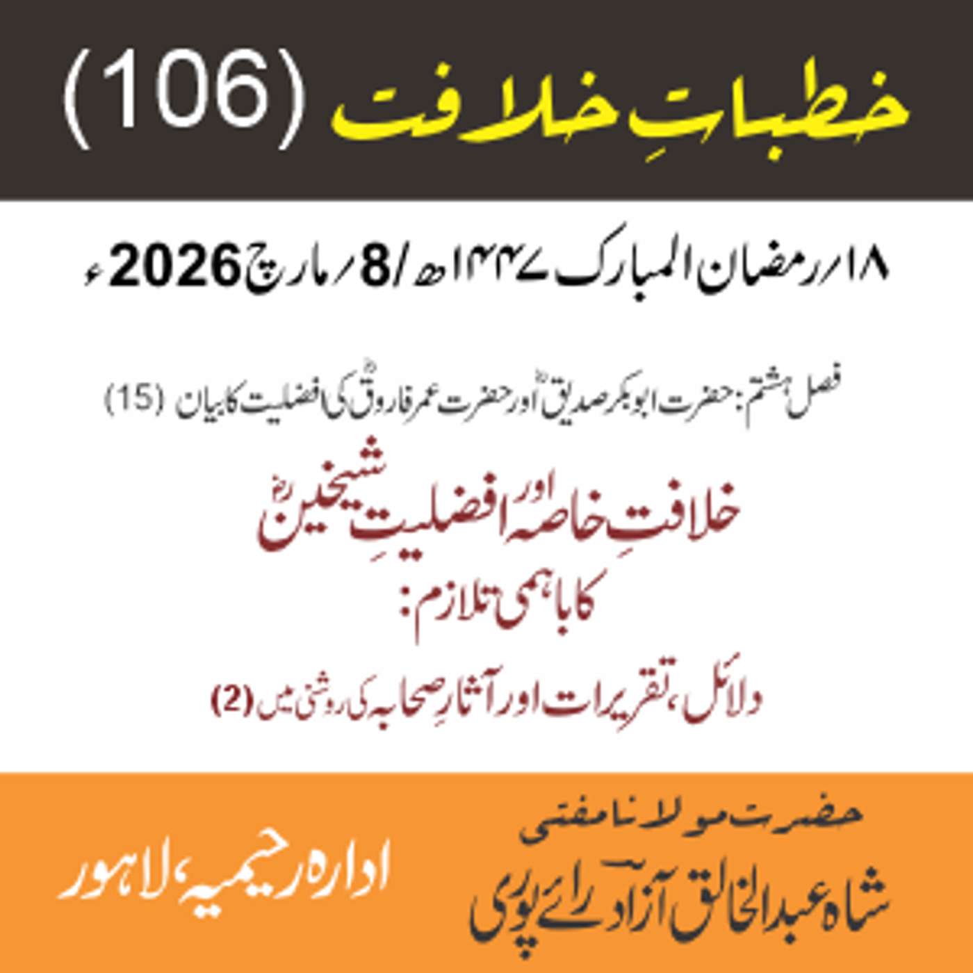 مقرر: مفتی عبد الخالق آزاد رایٗے پوری ، مسند نشین سلسلہٗ عالیہ رحیمیہ رایٗے پور۔