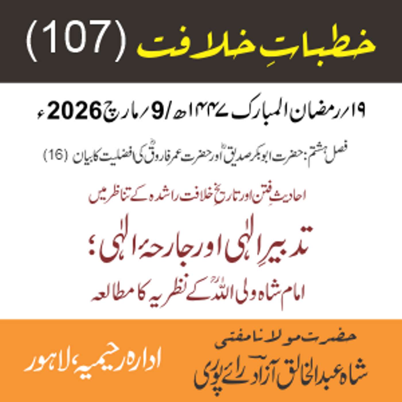 خطبات خلافت بسلسلہ افکار امام شاہ ولی اللہ