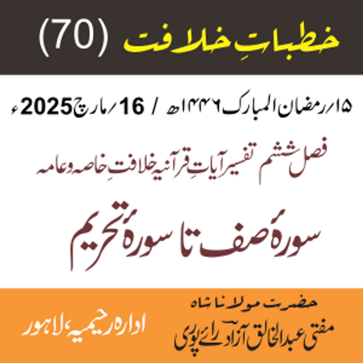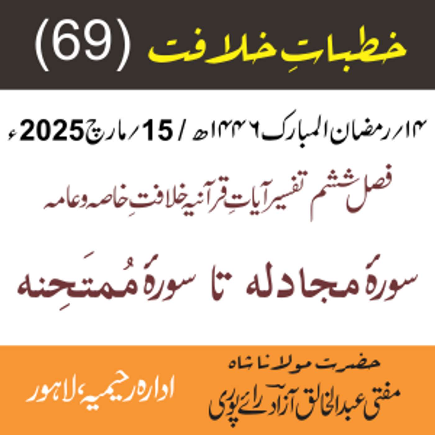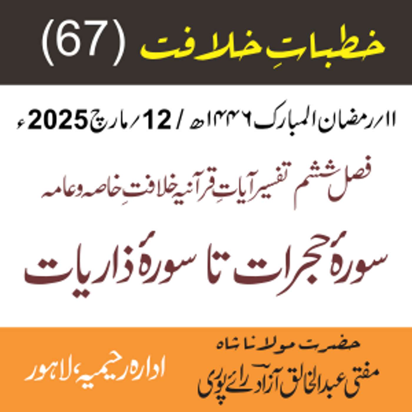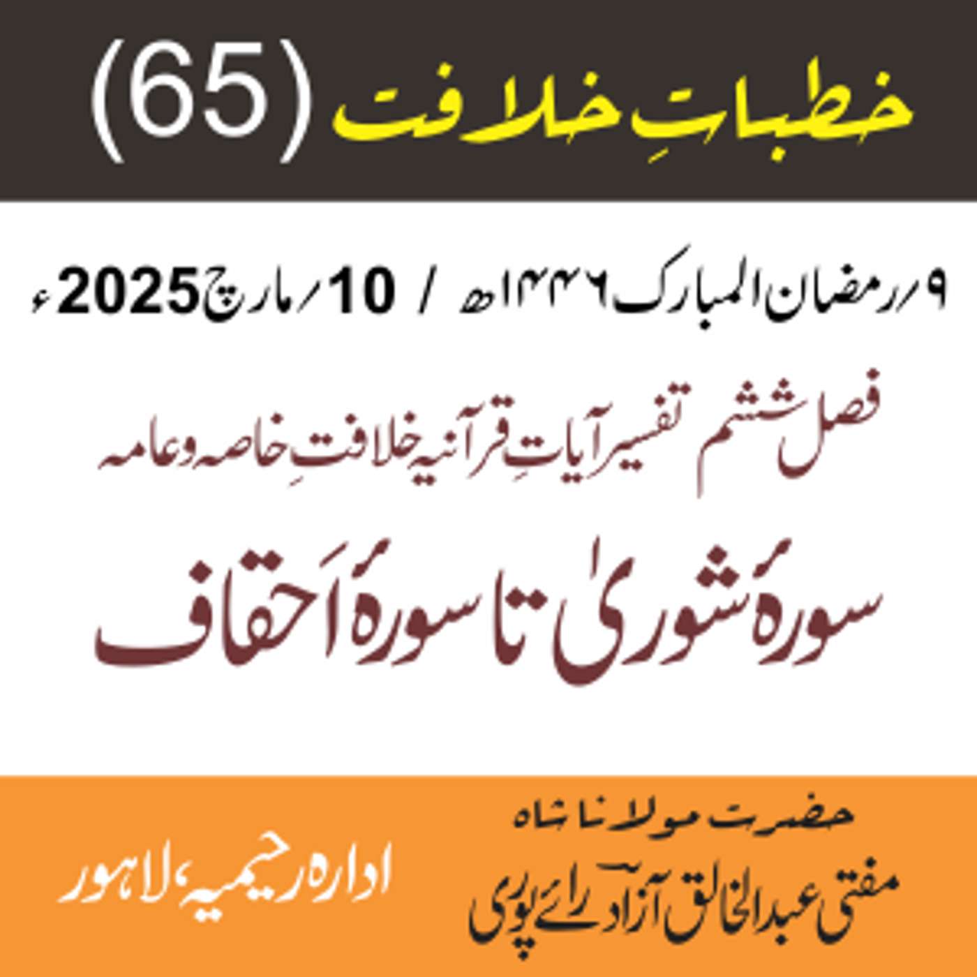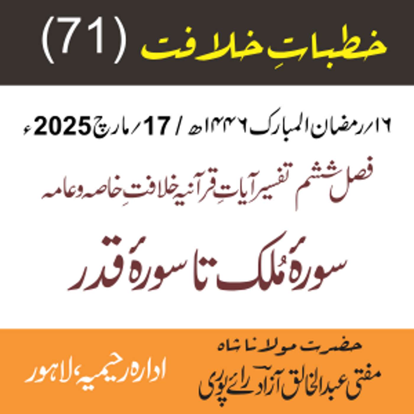 پیش کردہ ادارہ رحیمیہ علوم قرانیہ ، لاہور ۔ پاکستان