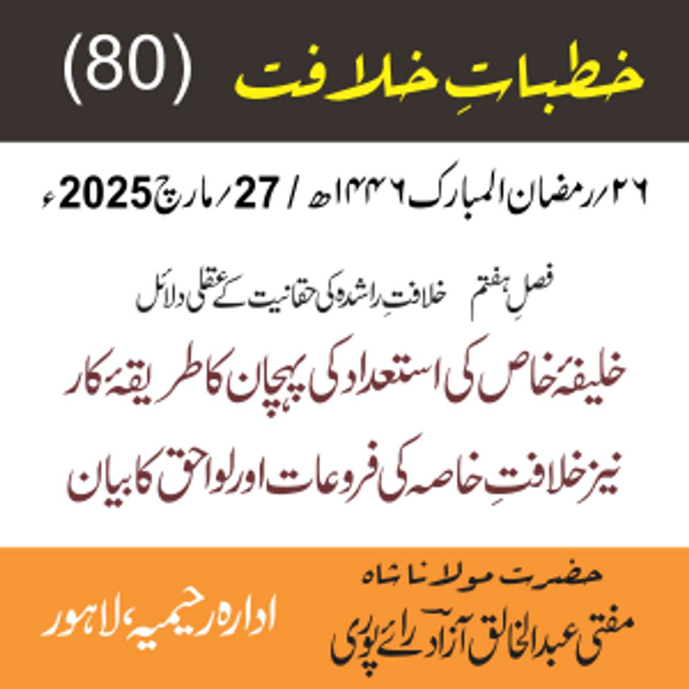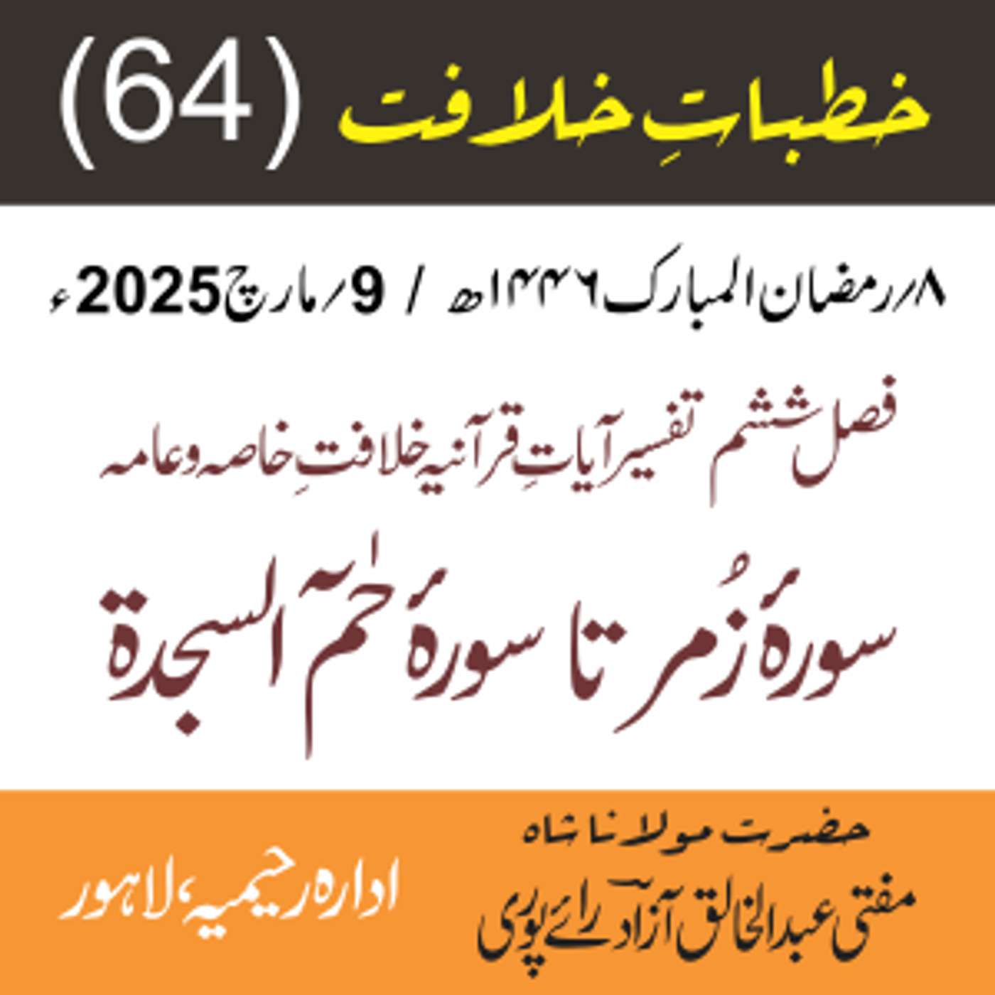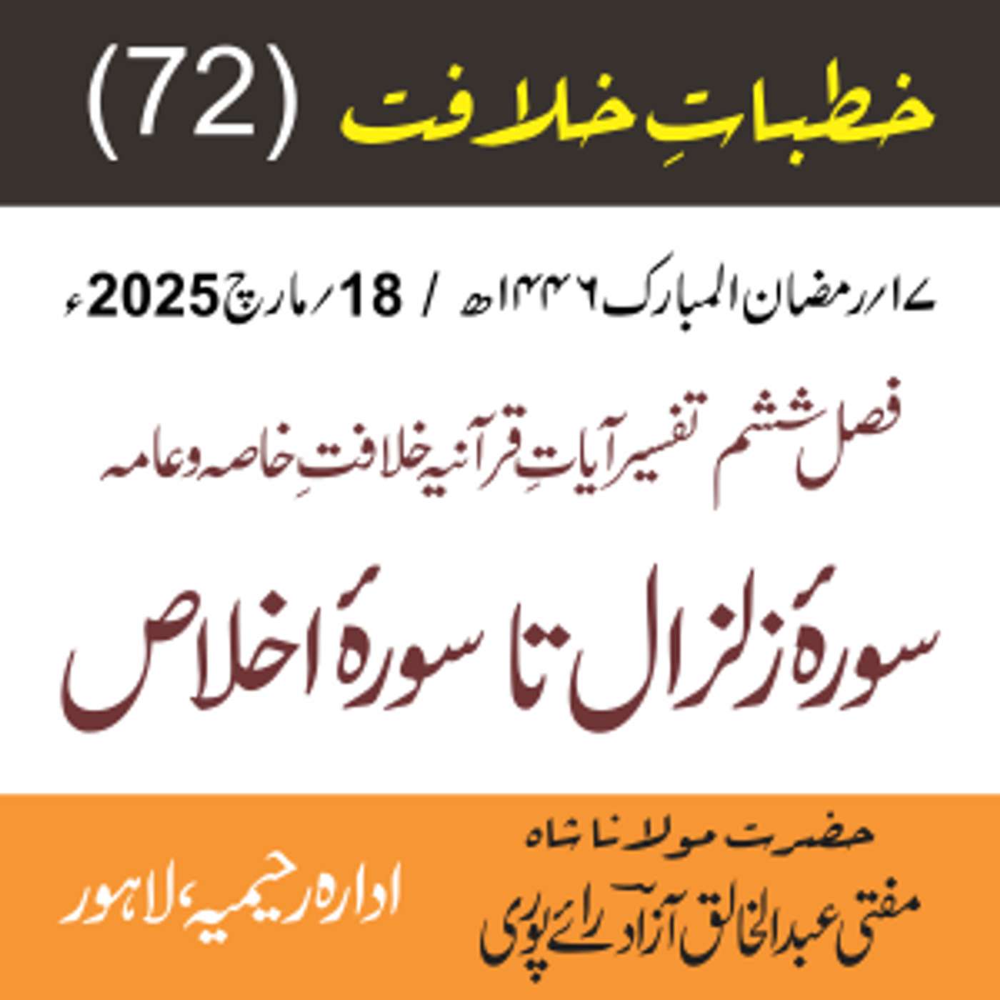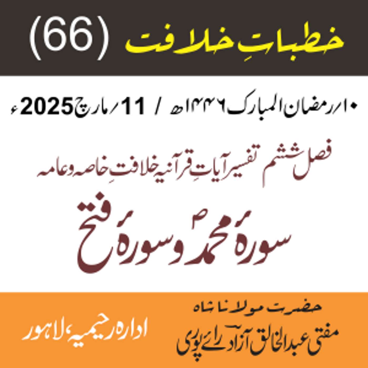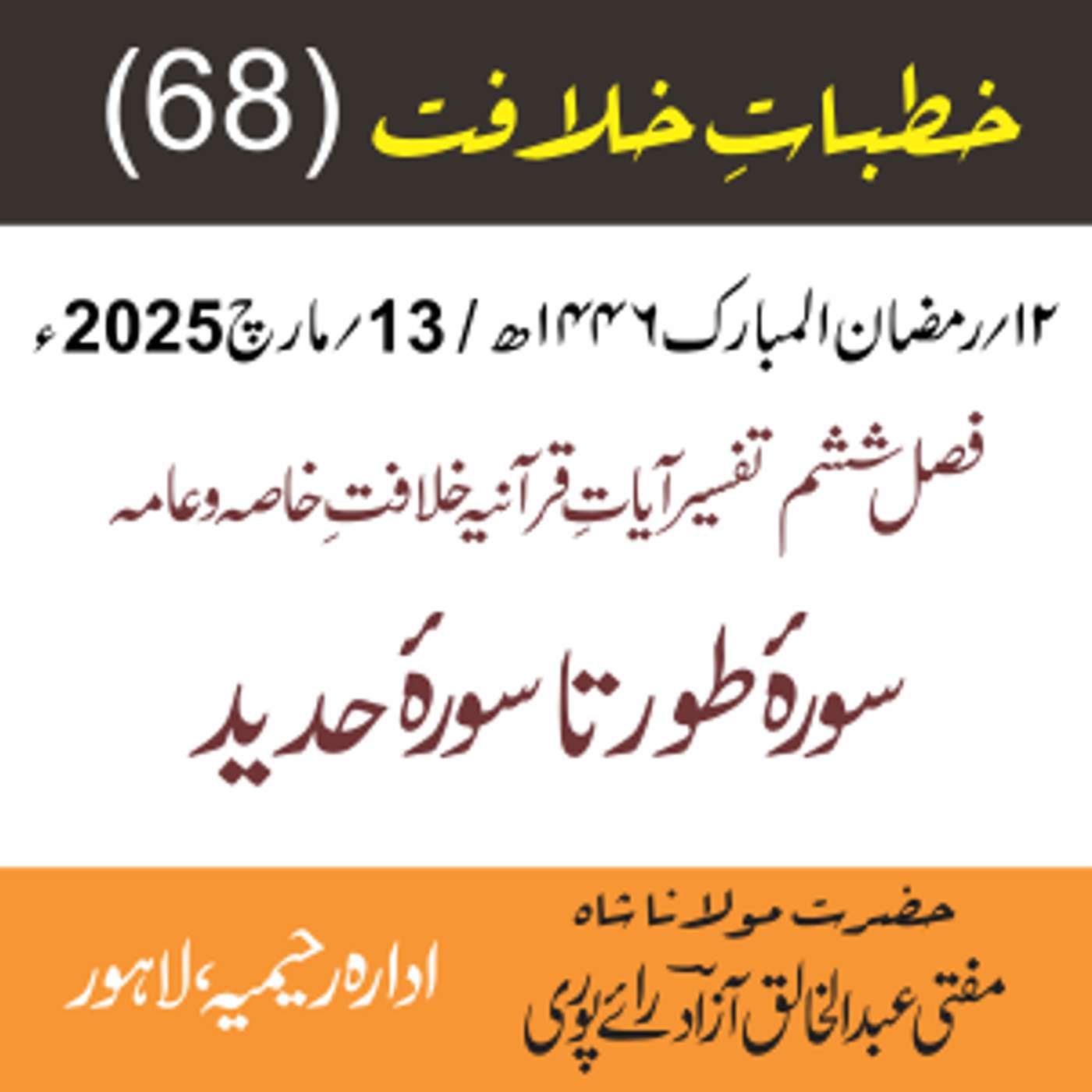 پیش کردہ ادارہ رحیمیہ علوم قرانیہ ، لاہور ۔ پاکستان
