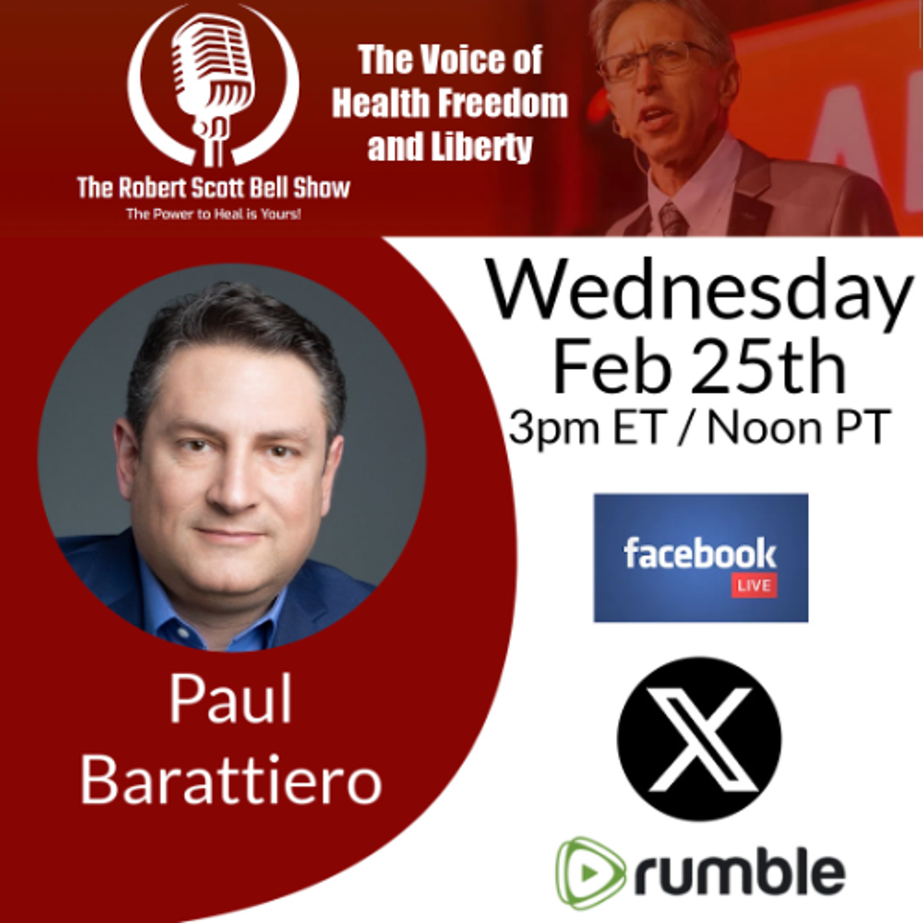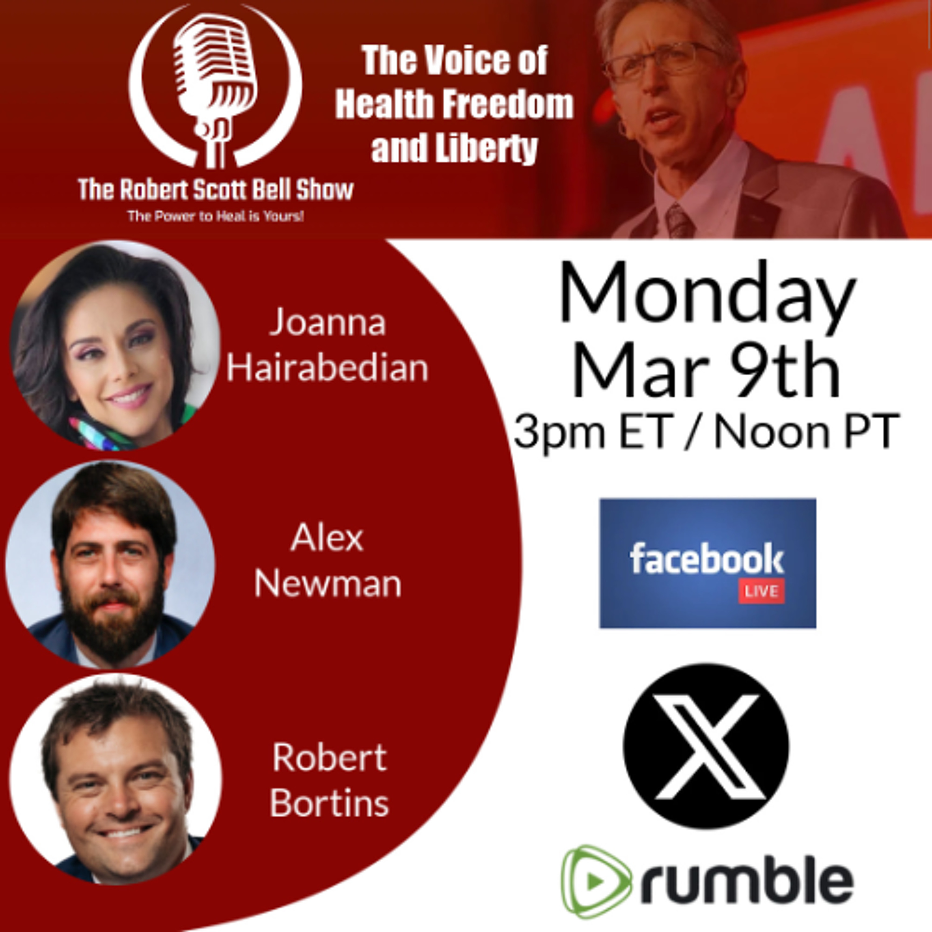 Robert hosts the fastest two hours of healing information on radio, dealing with everyday health issues from the perspective of alternative/holistic health care. Robert Scott Bell tackles the tough issues and shows no fear when confronting government and corporate bullies who would stand in the way of health freedom.